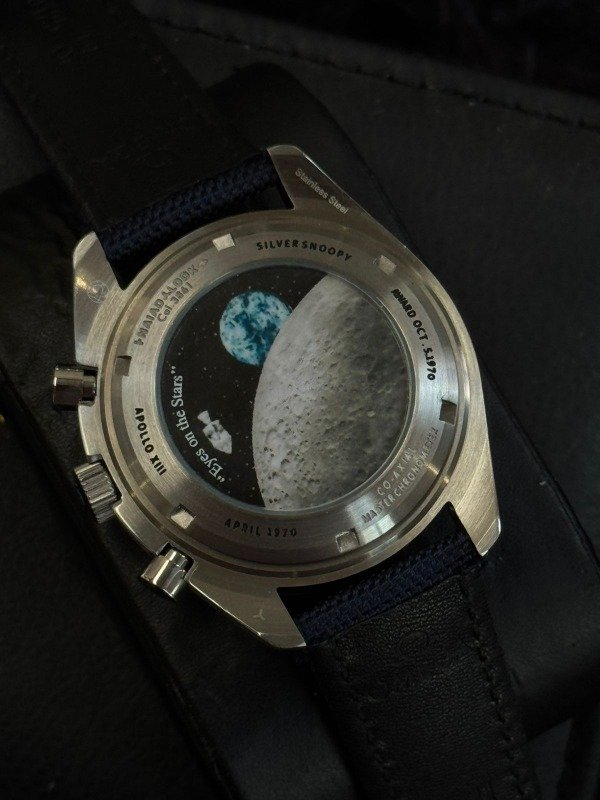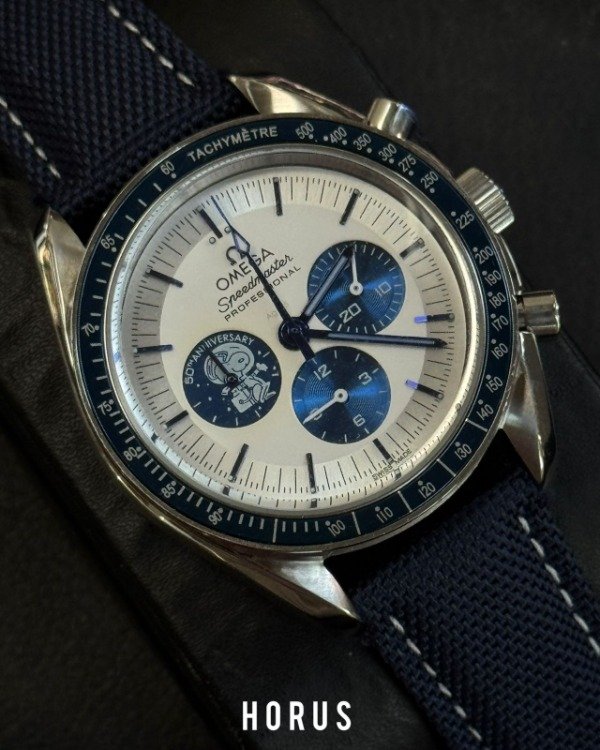 Este modelo conmemora el prestigioso “Silver Snoopy Award” que la NASA otorgó a Omega en 1970 por su rol clave en la misión Apollo 13. La edición se destaca por el icónico personaje Snoopy en la subesfera a las 9 en punto, junto con la frase “Eyes on the Stars”, en alusión al compromiso de precisión y confiabilidad que tuvo Omega durante el programa espacial.